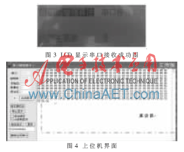PC与TMS320DM6437串口通信采用波特率为19.2 kHz,传输数据格式为1 bit停止位,8 bit数据位,无校验位。在PC接收数据时,接收200个8 bit数据,均与TMS320DM6437内存中存储的数据相同,可见传输过程误码率极低。如果PC发送数据,TMS320DM6437接收成功,LCD会相应显示,同时处理器切换不同算法。LCD显示串口接收成功界面显示如图3所示,上位机界面如图4所示。