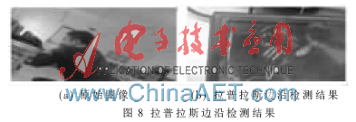 如图8所示,本系统对边沿检测算法处理时采用对整帧图像处理,图8(a)为原始图像,图8(b)为拉普拉斯边沿检测结果,可见系统已经检测到图像的边沿。