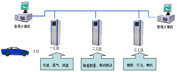 汽车综合性能检测线既能担负车辆动力性、经济性、可靠性和安全环保管理等方面的检测,又能担负车辆维修质量的检测以及在用车辆技术状况的检测评定,利用工控机与检测线上的称重、制动、速度、废气、烟度、灯光、声级等检测设备相联结,将各工位设备的信号经过调理与采集形成数字信号,并自动传输到主机上进行存储,根据检测结果形成完整的检测报告,并能提供数据的查询分析及统计功能,从而实现机动车安全检测的自动化管理及与上级主管部门及相关业务部门的信息共享。
