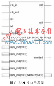系统采用6片TLK2711并行工作,接收端要根据发送端的速率适时调整接收端TLK2711的工作数量,以实现带宽的动态分配。当接收端的6片TLK2711同时接收数据时,FPGA需要在一个时钟周期内将96 bit并行数据转换为与PCI Express总线位宽匹配的64 bit并行数据,然后才能进行相应处理。考虑到调用FPGA内部的RAM IP核或者FIFO IP核无法实现该位宽转换,因此设计了一个输入位宽可变的RAM来处理数据位宽,从而实现接收端TLK2711工作数量可调。