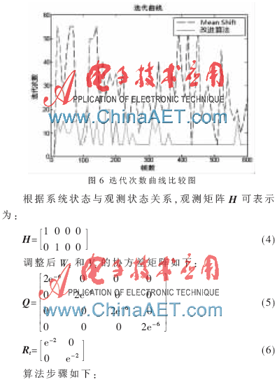 其中,场景2目标跟踪过程中传统算法和改进算法的迭代次数曲线图如图6所示,本文算法有效减少了跟踪过程中的Mean Shift迭代次数。