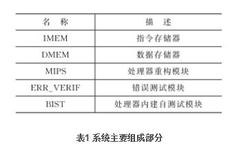 ERR_VERIF模块的故障分析方法为比较法。它将执行同样指令且同步运行的两个子系统的执行结果进行比较,当发现结果不一致时,就表示其中一个子系统出现了故障,这时需要使用BIST模块去主动定位故障位置。而BIST进行故障分析的方法与ERR_VERIF模块使用的方法本质上是相同的,但是实现方式不同。BIST模块将被测试模块产生的输出与BIST内部存储好的预期的输出进行比较,来测试被测模块是否出现故障。