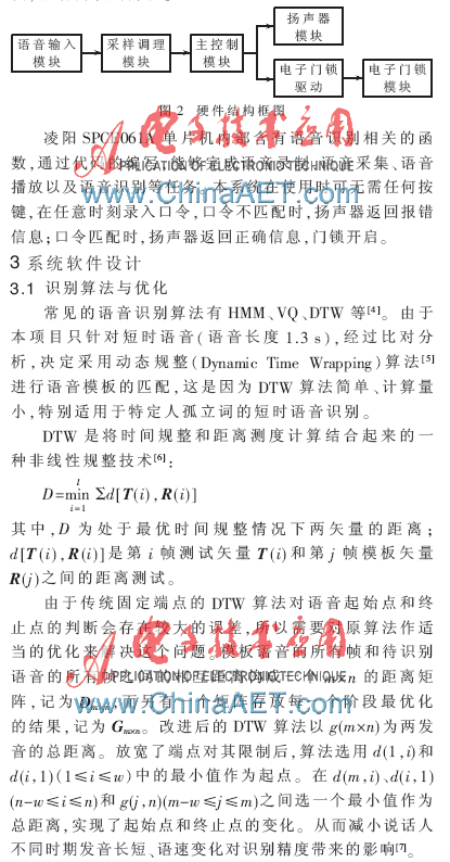 关键词: 语音识别;智能门禁;DTW;SPCE061A