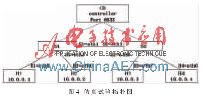 为了验证本文的设计,决定采用虚拟网络环境Mininet仿真平台,它可以在一台机器上创建一张多至数百个节点的大规模虚拟网络,节点类型和拓扑结构可以自行定义,并且支持OpenFlow协议,具体的实验拓扑如图4所示。