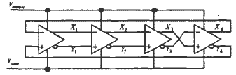 压控环形振荡电路的整体结构框图如图1所示,整个环路由四级延迟单元构成,每级延迟为TD,其中前三级电路接成反相的,最后一级电路正相连接,因此电路不会被锁定,且每级振荡电路的输出时钟相移为45°。