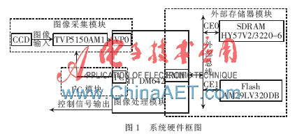 系统硬件主要由图像采集模块、图像处理模块和外部存储器模块3部分组成,如图1所示。