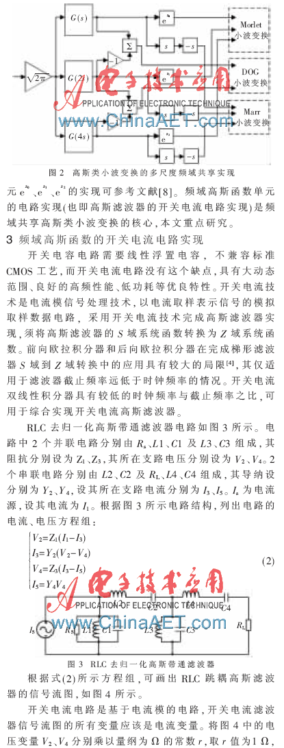 因为同时在时域、频域具备良好的分辨率,工程领域常常应用同属高斯类小波的Morlet小波、Marr小波、DOG小波作为母小波完成小波变换。本文提出了一个以频域中的高斯函数单元为核心的频域共享结构系统实现高斯类小波变换,以开关电流技术完成频域共享系统的电路实现,通过调节开关电流电路的时钟频率,可完成不同尺度上的高斯类小波变换。共享结构的提出可在最大程度上减小电路规模,为降低芯片功耗提供了有利条件,便于制成通用型高速低功耗小波变换芯片。所提出方法具有相当大的理论价值与实际意义,其有效性得到了仿真结果的验证。