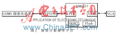棒材计数平台主要由DSP图像处理模块、CMOS图像传感器模块、存储模块(DDR2)和视频输出显示模块组成,硬件平台如图1所示。