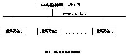 现场需要对模拟量和开关量进行监控,主要模拟量有流量信号、液位信号、压力信号、阀门开度信号等,主要开关量信号有刮泥车和吸泥车的启动、停止、运行、到位、故障及真空泵的工作状态等等。这些现场设备与中央控制室距离较远,目前大多数监控系统由分布式I/O完成检测与控制,现场设备与中央控制室之间的数据交换大都采用DP网络连接方式,在中央控制室设置DP主站,现场设备作为DP从站挂在DP网上。系统结构简图如图1所示。一个污水处理厂包括多个现场设备,每个现场设备作为1个DP从站连接到DP总线上。采用这样连结方式,现场施工工程量很大,需要架设电缆和桥架,费用较高,并且每个DP从站与DP主站之间采用有线连接,电缆容易损坏,维护起来比较麻烦。