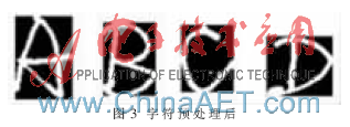 答题卷的客观题部分一般主要由答题序号(也就是印刷体数字)和答案(手写体A、B、C、D)构成。在进行数字和字符识别之前,通过参考文献[4]提供的方法可以使每个字符边缘没有空白区域,如图3所示。