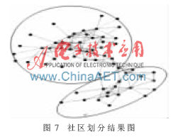实验结果表明本算法可以准确地将随机无标度网络分为两个社区,实验结果如图7所示。