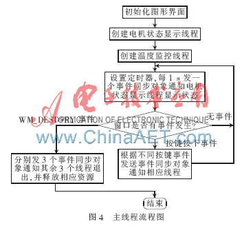 主线程(流程图如图4所示):主要响应各种窗口消息事件。考虑到软件要能及时响应用户发出的各种事件,主线程的优先级设为THREAD_PRIORITY_HIGHEST(高于正常优先级2级)。