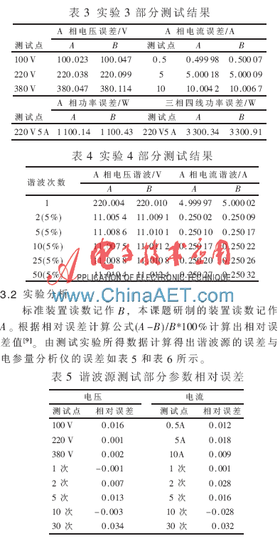 根据计算出的相对误差可知谐波源输出电流、电压相对误差低于0.05%,30次以内单次谐波输出精度低于0.1%;电参量分析仪测量电流、电压相对误差低于0.05%,50次以内单次谐波测量精度低于0.1%,其他参数也均达到设计目标。