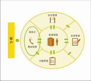 其中最重要的几个流程是服务台职能、事故管理、问题管理、配置管理、变更管理以及发布管理,也就是ITIL标准中所谓的服务支持部分,如图2所示。