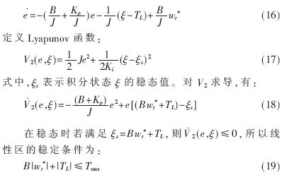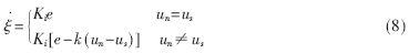 若控制器处于线性区,即un=us,控制器等效为传统PI控制器。误差方程为: