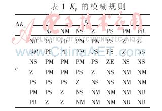 利用模糊控制理论对Anti-windup PI控制器中的参数Kp、Ki进行在线修改,将转速误差e及其变化率ec作为模糊控制器的输入,参数Kp和Ki作为输出,来满足运行中实时变化的e和ec对系统参数的要求。