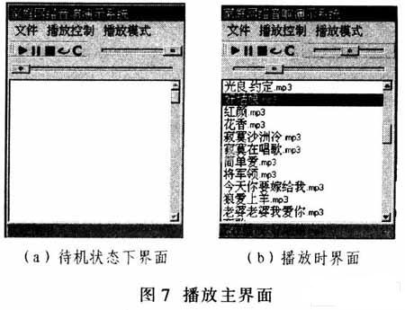 系统调试成功后,可流畅地从服务器中下载音频数据,保存到外接USB设备中,然后再通过音频解码从音响播放出来。图7为该系统主界面,系统音质良好,达到设计要求。
