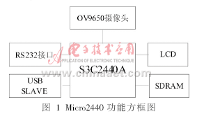 本文基于Micro2440的视觉处理平台具有以下特点: (1)Micro2440平台提供了丰富的外围接口,方便功能扩展,S3C2440A自带有CAMIF(Camera Inter-face) 模块,无需接口转化电路,核心板与底板分离可以进一步缩小体积;(2)CPU工作频率 400 MHz,处理速度较快,OV9650高达130万像素,分辨率高。