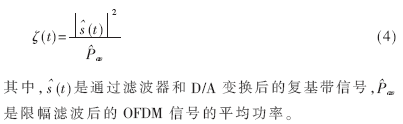 OFDM系统PAPR定义为信号峰值功率与平均功率的比值,数学表达式如下: