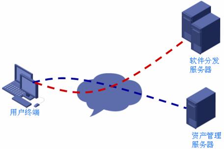 软件分发:服务端为资产创建分发任务,客户端向服务端请求资产策略,服务端回应同时,将分发任务下达给客户端,客户端连接到分发服务器进行软件下载,下载到本地之后可由用户自行安装,也可以自动安装。