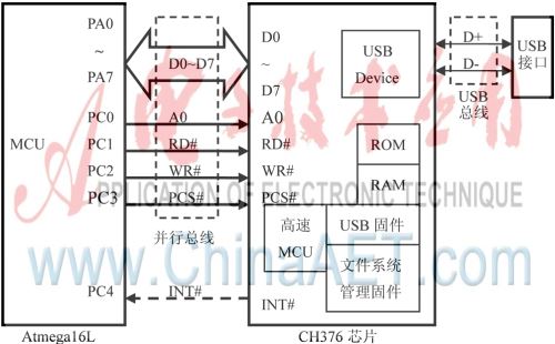 2.1 Atmega16L与CH376的电路设计
