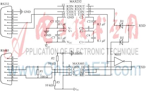 图3 串口通信接口电路图