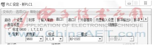 为了实现单片机与PLC的精确通信,ATmega16L单片机的串口设置为以中断响应的通信方式进行发送和接收数据,通信波特率设定为9 600 b/s,输出/输入的数据格式为1 bit开始位、8 bit数据位、1 bit停止位、1 bit校验位,奇偶校验方式设定为为偶校验[9]。主机PLC则以欧姆龙PLC为例,将串口1设置为RS-232C模式,数据格式与单片机相同,串口设置如图6所示。