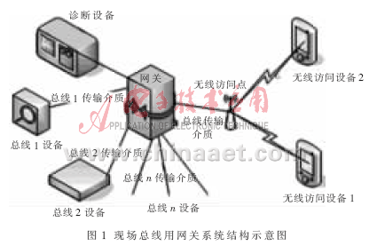 现场总线用网关一般要担负两种或多种总线之间的协议数据转换的责任,属于系统连接的关键部分。因此系统大多采用图1所示的的结构来实现。
