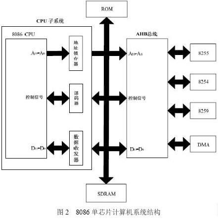 本文搭建的单芯片计算机系统基于标准8086 CPU,集成了AMBA 总线、SDRAM、8255、ROM 等外围IP,并在Altera DE2 FPGA 开发板上实现了功能演示。
