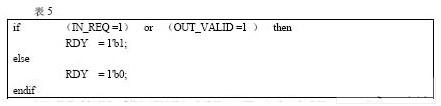 其中,DONE 信号用于指示是否读写完成,只有DONE 为高电平时表示读写完成,才能进行下次读写操作。RDY 信号表示SDRAM 是否做好准备接受CPU 的访问,由SDRAM的写请求信号(IN_REQ =1)和读有效信号(OUT_VALID =1 )共同控制,其产生过程伪码如表5 所示。
