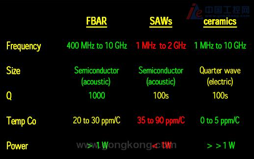 附图2:FBAR, SAW和陶瓷滤波器的性能比较