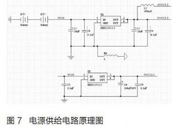 系统控制模块中,所包含的电源供给电路、时钟电路、复位电路、键盘控制电路等需要的器件都可参考由北京时代民芯科技有限公司提供的MXT8051开发板上的成熟产品,借鉴其接口方式并稍作修改,可满足预期要求。其中稍作修改的电源供给原理图及时钟电路原理图如图7、图8所示。