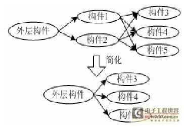 具体实现方法如图3所示,在构件操作上对没有引入新功能的构件在配线构件配线时候可以跨过整个系统集成构件,而不会影响系统功能,并可以简化开发过程,提高运行效率。以下将这一方法简称为直接调用法。