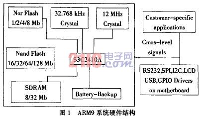ARM9系统硬件结构见图1。