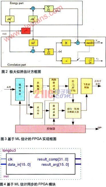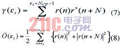 图2显示了极大似然估计算法的方框图。它增加了能量部分,能量部分是通过极大似然准则推导出来的,能量部分的引入弥补了单纯利用循环前缀相关性算法的缺点,使得定时更准确。