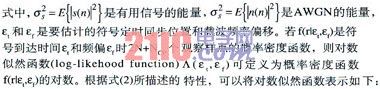 其中k为整数。由于余弦函数有周期性,所以根据k的不同会得到很多个最大值。如果考虑|εf|<0.5,则k=0。这样就得到εf的极大似然估计值: