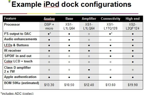 “XMOS提供的iPhone和iPod底座参考设计,具有三个主要的独特优点。” XMOS副总裁兼共同创始人Noel Hurley表示:“ 首先它采全数字设计,可提供高保真音质,具有优异的噪声免疫力。其次,可编程的定制化解决方案具有很大的灵活性,使得客户能够针对成本敏感市场提供差异化产品,包括可自行定义用户界面、选择任何的音频增强功能,以及定制输入输出连结性等。最后,XMOS的方案是与Apple的产品兼容,是带有软件栈的开放式硬件参考设计。”