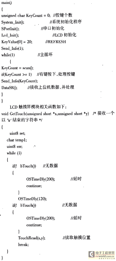 该软件系统主函数采用的是等待触摸键值的死循环结构。