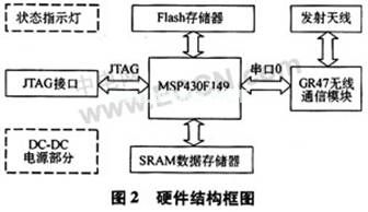 GPRS模块GR47集成了TCP/IP协议,并且可以通过监听指令得到80端口数据,所以只需在MCU中软件实现HTTP协议,解析HTTP数据后,即可实现HTTP连接。MCU采用TI公司的MSP430F149单片机,它是16位超低功耗、高性能的混合信号处理器,具有处理能力强、运行速度快、资源丰富、开发方便等优点,具有很高的性价比。