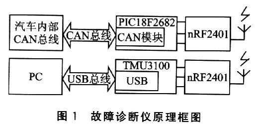 由于采用射频技术,使汽车CAN总线数据采集部分和CAN总线数据诊断部分得以分离,无需连线,不受空间场地限制,安装携带方便。按照ISO有关标准,CAN总线传输速率最高可达1 Mbps;但由于汽车内部特殊环境,车载CAN总线速率一般在250 kbps。本系统中射频速率最高可达l Mbps,可以很好地满足数据传输要求。
