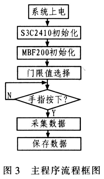 软件设计主要实现S3C2410控制MBF200驱动程序的编写。在ADS 1.2开发环境下采用移植性强的C语言编写程序,目标板上电后初始化整个采集系统,包括ARM系统的初始化和MBF200的初始化。