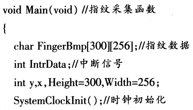 MBF200的功能寄存器中除SRA、CIDH、CIDL外,在指纹采集前必须对其初始化。指纹采集主程序源代码如下: