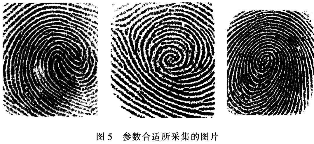 (2)DTR、DCR、PGC寄存器参数选择DTR、DCR、PGC 3个寄存器参数选择直接决定采集图片的质量。DTR寄存器控制电容放电时间,它对图片的背景有很大影响,如果过小,则背景区域较暗,不利于后续处理,经实验验证其值最好不小于0x2e;DCR寄存器控制电容放电电流,它对图片的前景区和背景区都有很大影响,如果过小,则背景区域较暗,不利于后续处理,如果该值过大,则图片很淡,亦不利于后续处理,经实验验证其值最好为0x01;PGC寄存器是可编程增益寄存器,它对图片的前景背景都有很大影响,如果过小,则前景区域较浅,不利于后续处理,经实验验证其值最好不小于0x0c。图5为凋整好参数后所采集的图片。其中,DTR=0x32,DCR=0x01.PGC=0x0e。