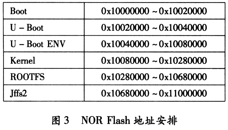 笔者采用的Flash为16 MB NOR Flash,为了实现层次文件系统,需要增加NOR Flash MTD驱动支持,具体地址安排,如图3所示。