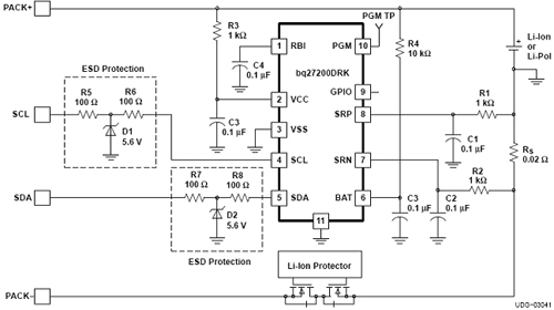 在电池管理中,电池"容量计"正变得日益流行。在传统上,通常用以下方法来测量电池容量,即:先测量锂离子电池的电压,然后再用存储在存储器中的容量查找表来得出有关可用电池功率的结果。但由于3G手机复杂的功耗特性及锂离子电池性能随时间、温度及负载条件的变化,上述方法并不实用。为精确测量剩余电池容量以使处理器能更好地管理手机功耗,人们采用了具有"阻抗跟踪"能力、并能测量进出电池实际电量的高性能库仑计。这使处理器能有效地部署电池节省模式、精确确定电池耗尽时间以及当需要充电时向终端用户告警等。图2即显示一种集成在电池盒中、并通过I2C通信接口向主处理器发送参数的库伦计。
