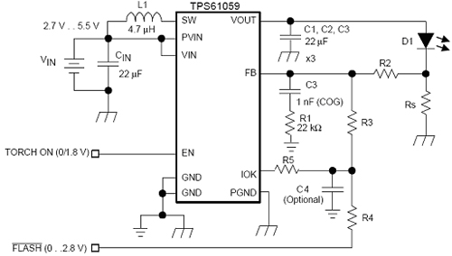 图3:用于高亮度相机闪光灯LED的高效率DC/DC升压块 |