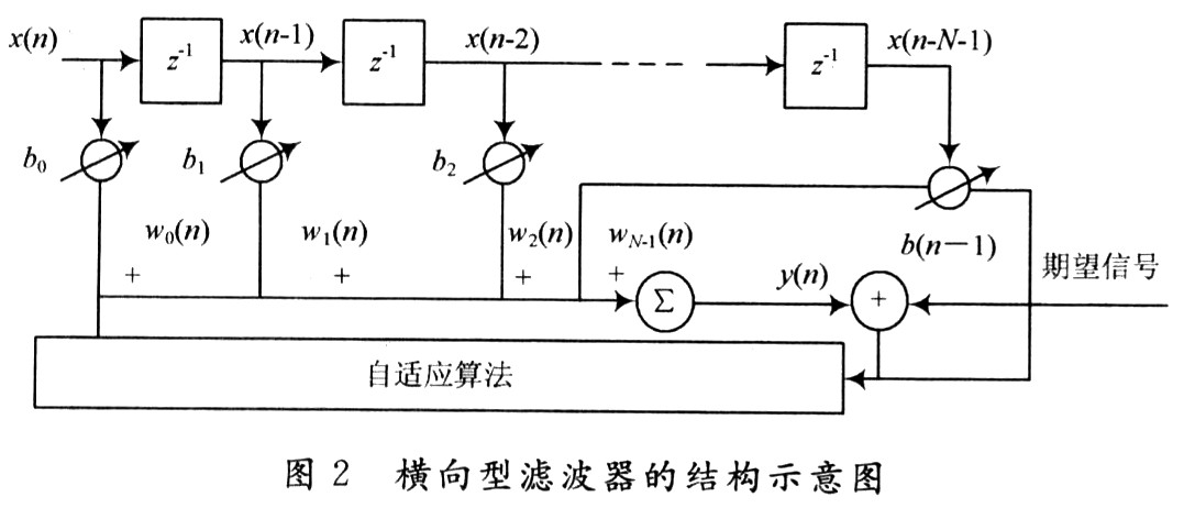 自适应滤波器设计中最常用的是FIR横向型结构。图2是横向型滤波器的结构示意图。