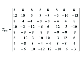 由于FRExt针对高分辨率的视频图象,因此,为了得到更好的编码效率,在FRExt里增加了一种整数8%8变换方法,变换矩阵为: