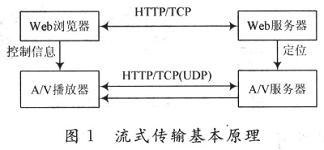 流式传输的实现需要缓存。因为Internet以包传输为基础进行断续的异步传输,对一个实时A/V源或存储的A/V文件,在传输中它们要被分解为许多包,由于网络是动态变化的,各个包选择的路由可能不尽相同,故到达客户端的时间延迟也就不等,甚至先发的数据包还有可能后到。为此,使用缓存系统来弥补延迟和抖动的影响,并保证数据包的顺序正确,从而使媒体数据能连续输出,而不会因为网络暂时拥塞使播放出现停顿。通常高速缓存所需容量并不大,因为高速缓存使用环形链表结构来存储数据:通过丢弃已经播放的内容,流可以重新利用空出的高速缓存空间来缓存后续尚未播放的内容。流式传输的实现需要合适的传输协议。由于TCP需要较多的开销,故不太适合传输实时数据。在流式传输的实现方案中,一般采用HTTP/TCP来传输控制信息,而用RTP/UDP来传输实时声音数据。流式传输的过程一般是这样的:用户选择某一流媒体服务后,Web浏览器与Web服务器之间使用HTTP/TCP交换控制信息,以便把需要传输的实时数据从原始信息中检索出来;然后客户机上的Web浏览器启动A/VHelper程序,使用HTTP从Web服务器检索相关参数对Helper程序初始化。这些参数可能包括目录信息、A/V数据的编码类型或与A/V检索相关的服务器地址。