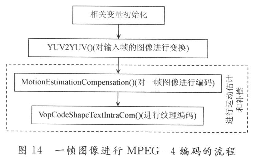 由于MPEG一4压缩编码系统比较复杂,在论文中将重点对MPEG一4压缩编码技术进行研究,分析其在PC机上的压缩编码的源码,为以后在ARM等嵌入式设备上的移植奠定基础。对一帧图像进行MlPEG一4编码的流程如图14所示。